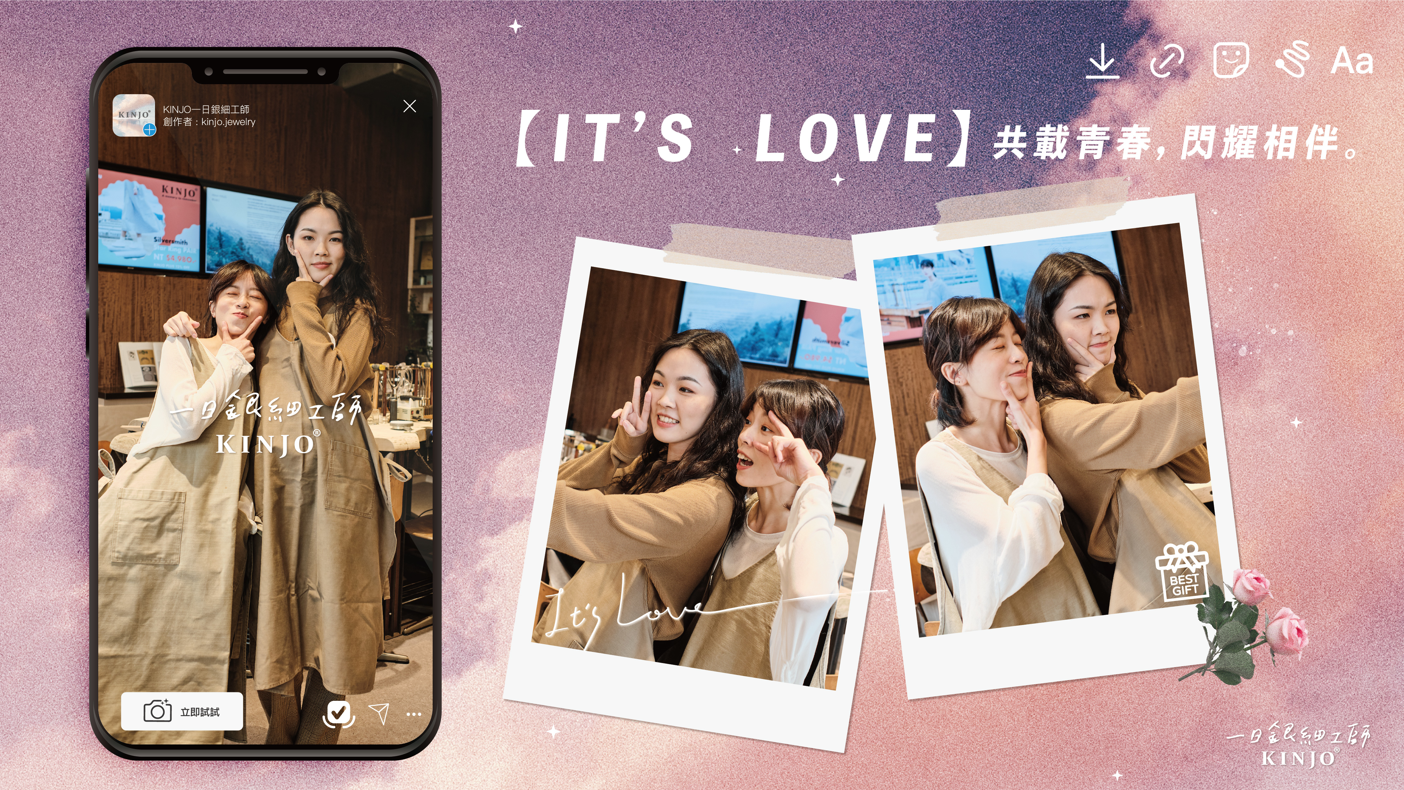 STEP3 『LOVE STORIES』:使用KINJO限動特效發布限時動態 or 拍照上傳,並@kinjo.jewelry